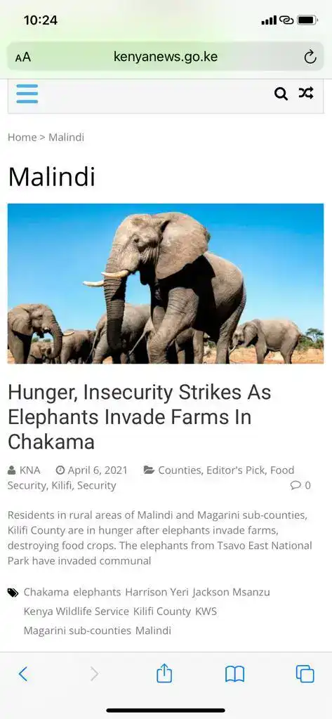 « Le malheur de la famine frappe Shakahola. Des éléphants ont envahi nos fermes et détruit nos récoltes. Depuis un mois, il chasse les éléphants tous les soirs », disait l'article.