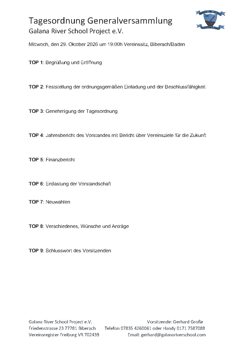 Am 29. Oktober 2026 findet unsere diesjährige Hauptversammlung am Ort des Vereinssitzes statt. Beginn ist um 19.00h. Die Tagesordnung liegt auch in der Versammlung aus.